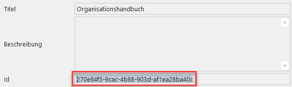 Ersetzen Sie dann in der Codezeile "<p.mydomain.com>" durch die neue, von Ihnen selbst zu definierende Adresse und "<WG-ID>" durch die ID des Wissensgebiets, die im lexiCan Administrator für das jeweilige Wissensgebiet definiert ist z.B.