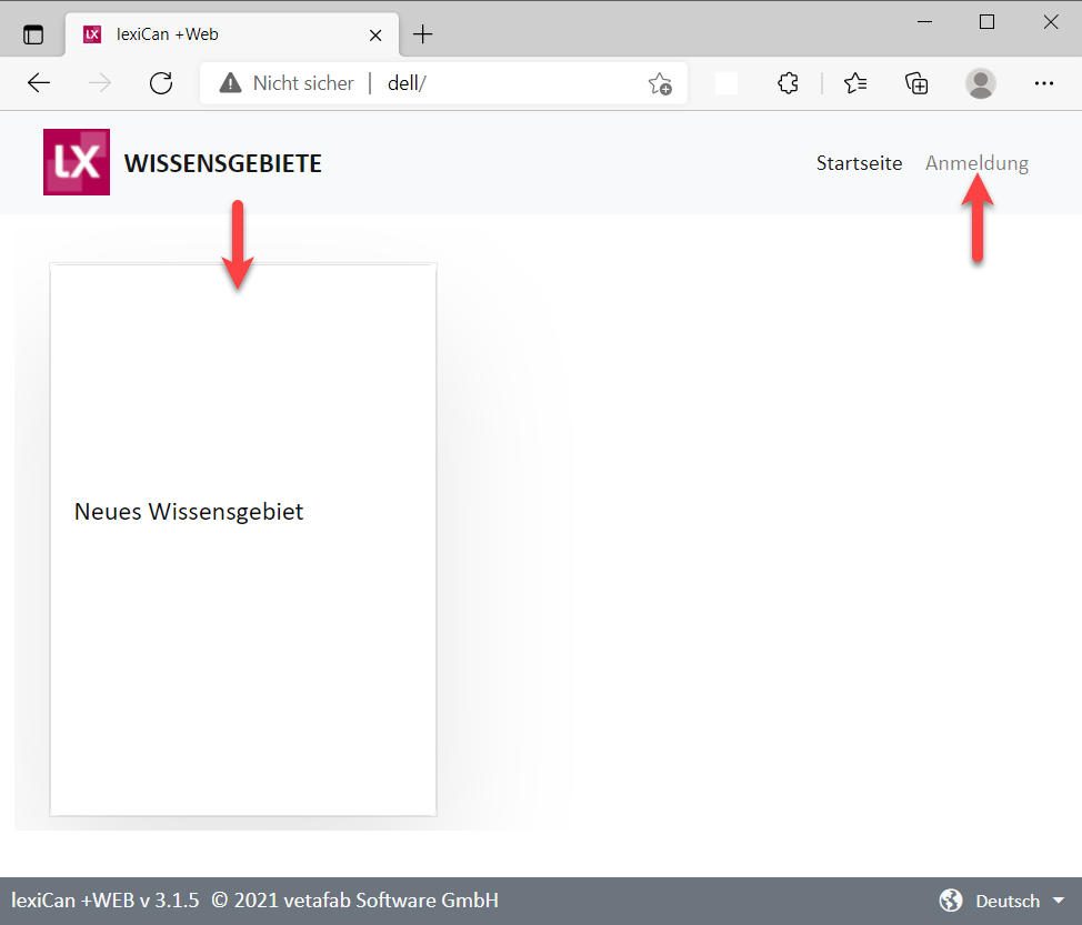 Der Zugriff auf Wissensgebiete über den Webclient ist nicht automatisch möglich. Damit Sie auch über den Webclient auf diese zugreifen können, müssen dies für jedes einzelne Wissensgebiet definiert werden.