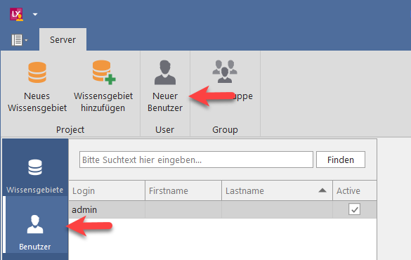 Zum Erstellen eines Benutzerkontos starten Sie den Administrator und klicken Sie in der Menüleiste auf "Neuer Benutzer".