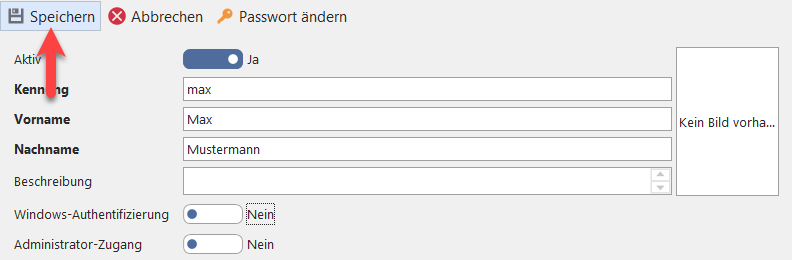 Nachdem Sie zumindest alle Pflichtfelder ausgefüllt haben, können Sie das Benutzerkonto über "Speichern" anlegen, z.B.