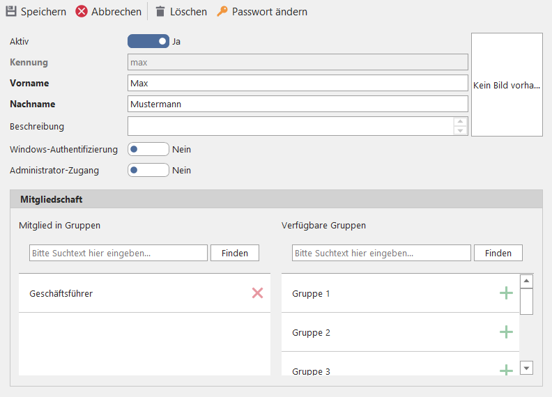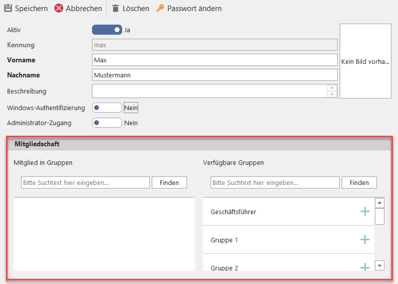 Benutzerkonten Gruppen zuordnen